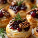 These bite-sized pastries combine warm, gooey Brie with bright cranberry sauce inside a flaky puff pastry shell, making them a perfect appetizer for any occasion.