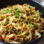 A fast, savory skillet meal that brings all the flavors of an egg roll without the wrapper, featuring ground beef, crisp cabbage, and fragrant spices.