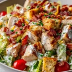 This salad is quick, filling, and full of texture. The mixture of diced chicken and beef gives bold, meaty flavor while bacon adds smoky crispness. Ranch dressing lends a creamy, tangy finish that coats each bite. It works as a meal on its own, a potluck dish, or a make-ahead lunch. The colors are bright — deep greens, red tomatoes, and golden cheddar — making it an attractive plate as well as a tasty one.