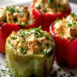 This dish is fast, satisfying, and full of contrast: sweet roasted peppers, creamy cheesy filling, and a little crunch if you add breadcrumbs. It’s a one-dish meal that looks inviting on the table and uses pantry-friendly ingredients. The filling is rich and savory, with garlic and Italian seasoning giving it a familiar, comforting aroma.