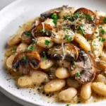 A quick and comforting one-pan meal featuring earthy mushrooms and tender white beans simmered in a silky cream sauce flavored with onion and garlic.