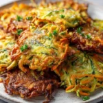 Crispy vegetable fritters are a fast, bright, and satisfying snack or light meal. They crisp on the outside, stay tender inside, and offer a fresh mix of zucchini, carrot, bell pepper, and onion. The scent while frying is warm and savory, with sweet notes from the carrot and a hint of toasted corn from the cornmeal. If you like easy vegetable dishes with bold texture, you might also enjoy cheesy baked orzo with vegetables for a different weeknight option.