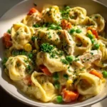 This Crockpot Cheddar Chicken Pot Pie Tortellini is an easy, cozy weeknight meal that blends the creamy, savory flavors of chicken pot pie with tender cheese tortellini. It fills the house with a warm, cheesy aroma and gives you a comforting bowl of creamy broth, soft vegetables, and pillowy tortellini — all made with minimal hands-on time. If you like pot pie flavors without the fuss, try this simple variation for a family-friendly dinner and compare ideas with this crustless chicken pot pie for another cozy option.