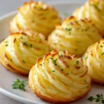 These classic Duchess Potatoes are creamy inside with crisp, golden edges. They look elegant on the plate and taste rich and buttery with a hint of nutmeg. The swirled tops brown in the oven and give a light crunch that contrasts the silky center. They make a simple side feel special.