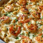 This dish combines fast weeknight cooking with restaurant-style flavor. Garlic and olive oil give the shrimp a bright aroma, while Alfredo sauce and cheeses create a silky, rich sauce that clings to fettuccine. The bake step melts and browns the cheese, adding a crisp, golden top. It’s quick to assemble, feeds a family, and looks elegant on the table.