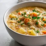 This Healthy Chicken Pot Pie Soup turns the cozy flavors of pot pie into a light, creamy bowl of comfort. It smells like warm herbs and sautéed vegetables, and the broth is smooth with tender chicken and soft potatoes in every spoonful. It’s easy to make for weeknights and fills the house with a homey aroma. If you enjoy light comfort-food twists, you might also like this creamy healthy tuna pasta salad for another quick, satisfying dish.