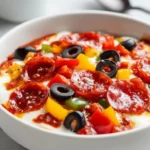 This Low Carb Crustless Pizza Bowl gives you all the cozy flavors of pizza—warm marinara, melty mozzarella, savory pepperoni—without the crust. Roasted cauliflower becomes the base, offering a tender, slightly nutty bite that soaks up sauce and cheese. The aroma is inviting, the texture is satisfying (crispy edges, soft center), and it’s ready in under 40 minutes. If you want more crustless pizza ideas and casserole-style inspiration, check this crustless pizza casserole recipe for variations and tips.