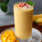 A refreshing and tropical smoothie made with ripe mangoes, banana, coconut milk, and yogurt, perfect for breakfast or a light snack.