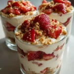 This parfait is fast, flavorful, and satisfying. It gives you cheesecake-like richness without baking. The Greek yogurt adds tang and protein. Cream cheese gives that silky, dessert-like mouthfeel. Fresh strawberries bring brightness and a juicy bite. The graham crumbs add crunch and a nostalgic flavor. It’s easy to scale up for guests or make a solo treat. Serve it when you want something pretty, quick, and comforting.