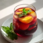 Peach Hibiscus Sunset Tea is a bright, refreshing drink that blends tart hibiscus with sweet fresh peaches and a squeeze of lemon. It tastes like summer in a glass — floral, fruity, and slightly tangy. The color is a deep rosy-pink with soft orange hints from the peach puree. Serve it over ice for a cool, fragrant sip that smells floral and fruity. If you enjoy sunset-themed treats, this tea pairs nicely with a light dessert like Mango Strawberry Sunset Cupcakes.