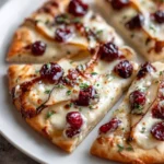A delightful blend of sweet pears, tart cranberries, and creamy Brie on a crispy flatbread, perfect for a cozy dinner or as an elegant appetizer.