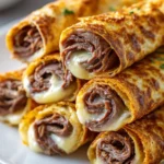 - Reheat: Warm au jus in a small saucepan. Reheat rollups in a skillet over low heat, covered, for 2–3 minutes per side until cheese softens. Avoid microwaving too long to prevent soggy tortillas.