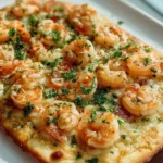 Shrimp scampi flatbread is a bright, garlicky twist on two favorites: shrimp scampi and crispy flatbread. Tender shrimp sautéed in butter, olive oil, garlic, and lemon sit on a toasted flatbread topped with melted mozzarella and fresh parsley. The result is a mix of rich butter, bright lemon, warm garlic aroma, and a crisp, chewy crust — perfect for a quick weeknight dinner or an impressive appetizer.