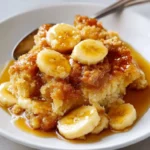 This cobbler is made by combining dry and wet batter components, layering sliced bananas in a baking dish, and pouring the batter over them. As it bakes, the batter puffs into a soft, cake-like topping while the bananas soften and release sweet juices. The top turns golden brown and smells inviting when it’s done.