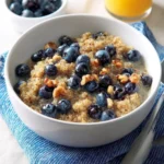This recipe is fast and flexible. It comes together in about 20 minutes. The quinoa soaks up the spice and keeps a light, slightly nutty chew. Blueberries add bright sweetness and a juicy pop. It smells of cinnamon and warm nutmeg while cooking. Serve it warm for a cozy morning or chilled for a refreshing snack. It’s naturally gluten-free and can be made vegan with maple syrup.