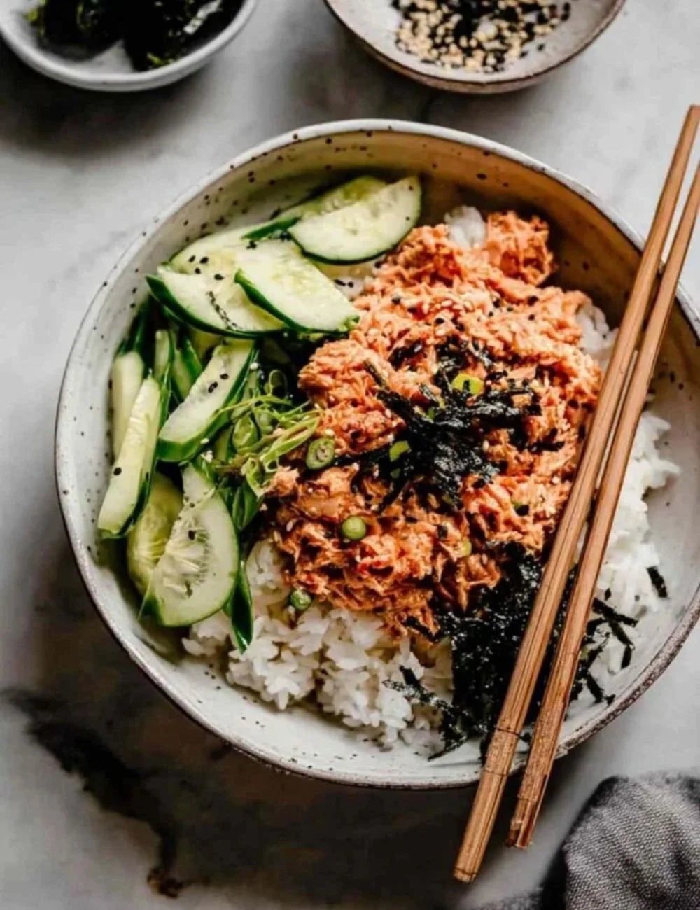 This recipe is fast and flexible. It uses pantry tuna and simple pantry sauces to give you restaurant-style flavors at home. The texture contrast of soft rice, creamy tuna, smooth avocado, and crunchy cucumber is very satisfying. It’s great for busy weeknights, lunches, or a light dinner. The scent of toasted sesame and green onions makes the bowl feel special even though it takes little effort.