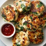 Golden, cheesy patties made with ground chicken, fresh spinach, and gooey mozzarella, perfect for weeknight dinners or party platters.