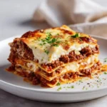 A warm, comforting lasagna bake that boosts protein with cottage cheese and lean meat, featuring garlic, herbs, and tender noodles.