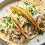 These White Chicken Chili Tacos bring creamy and savory flavors of white chicken chili into a fun taco format, filled with shredded chicken, beans, and corn.